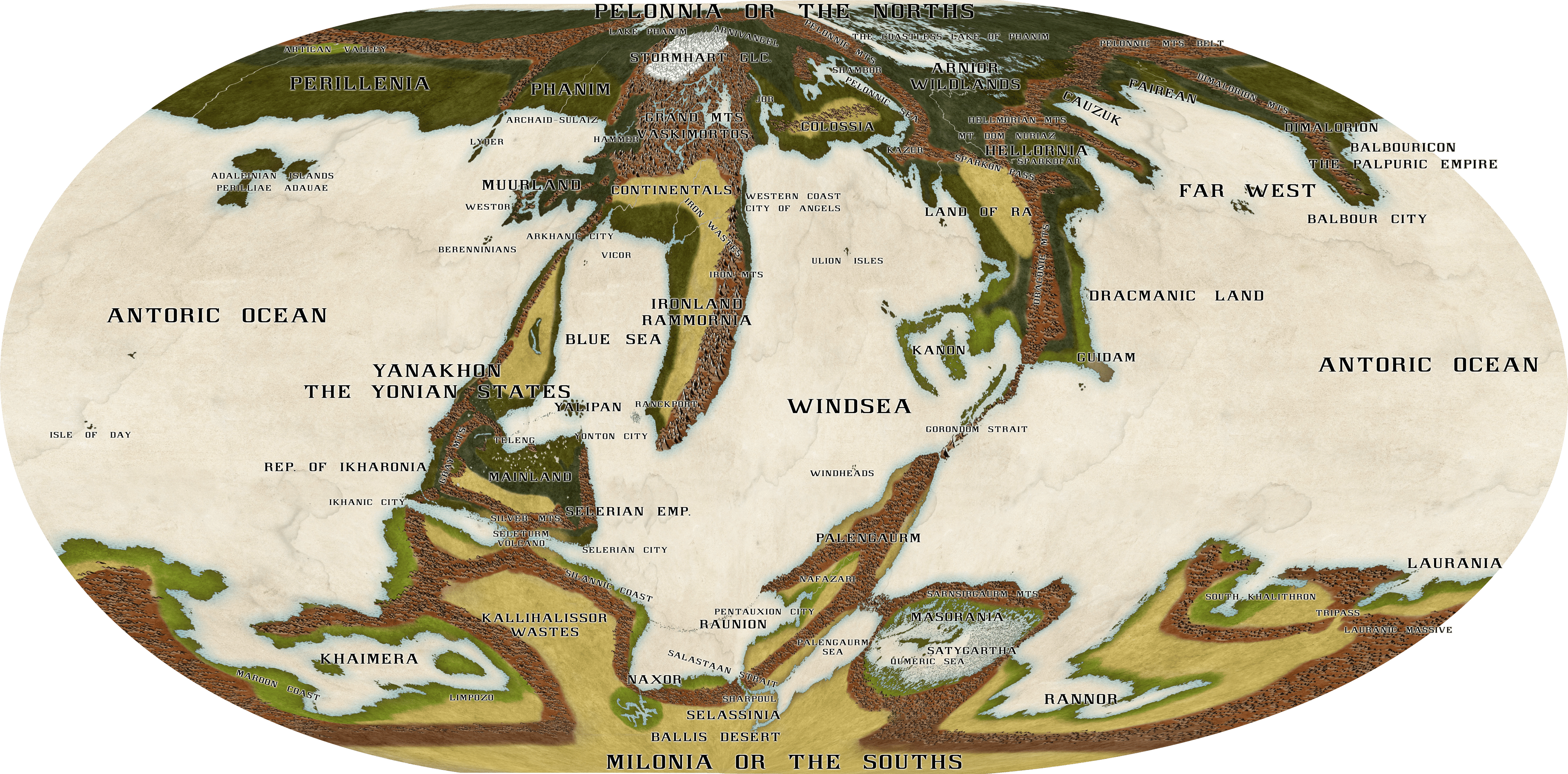 The full globe projection of planet Antoria.